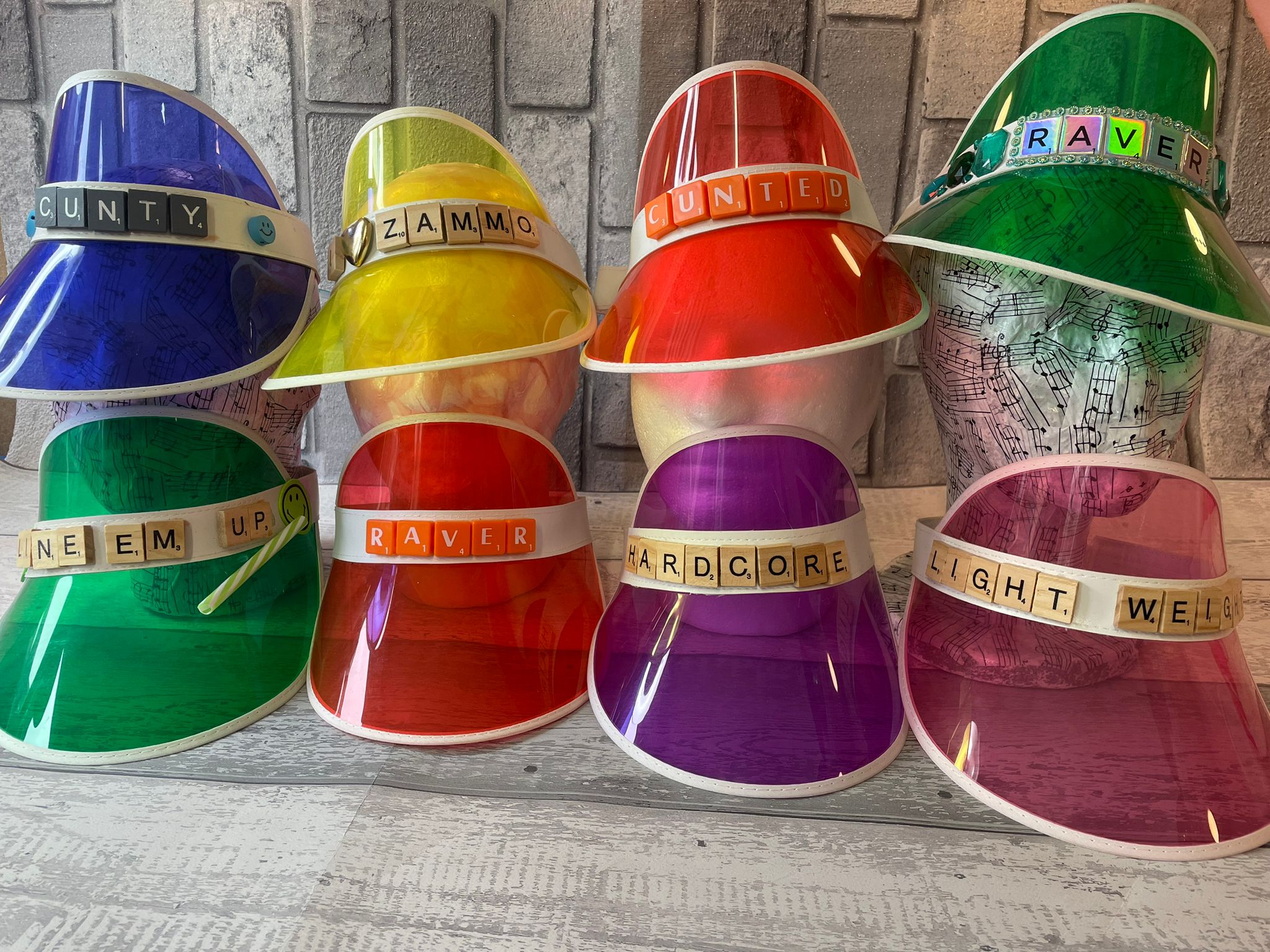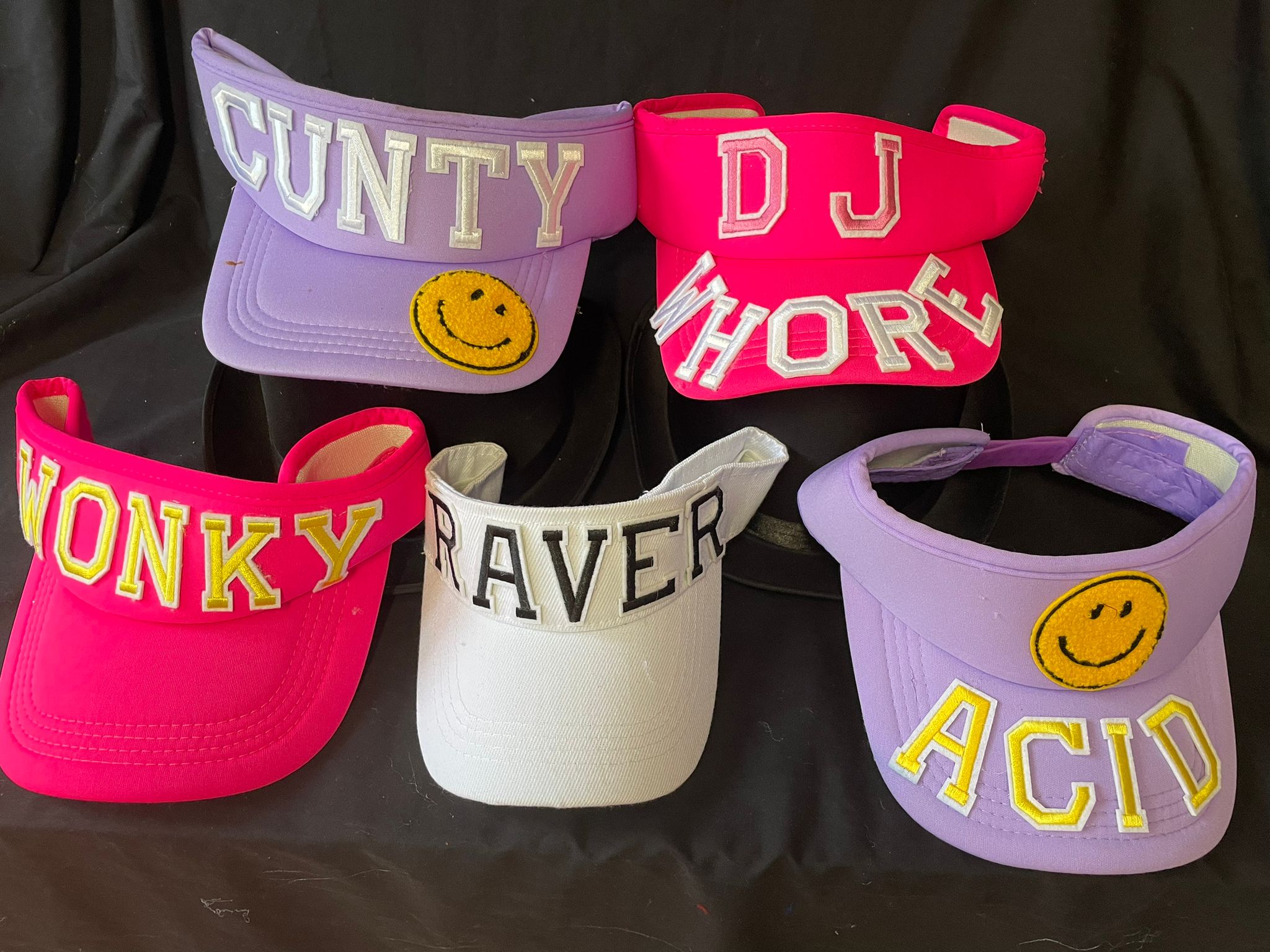 Visors and headdresses are elasticated so will fit any size head